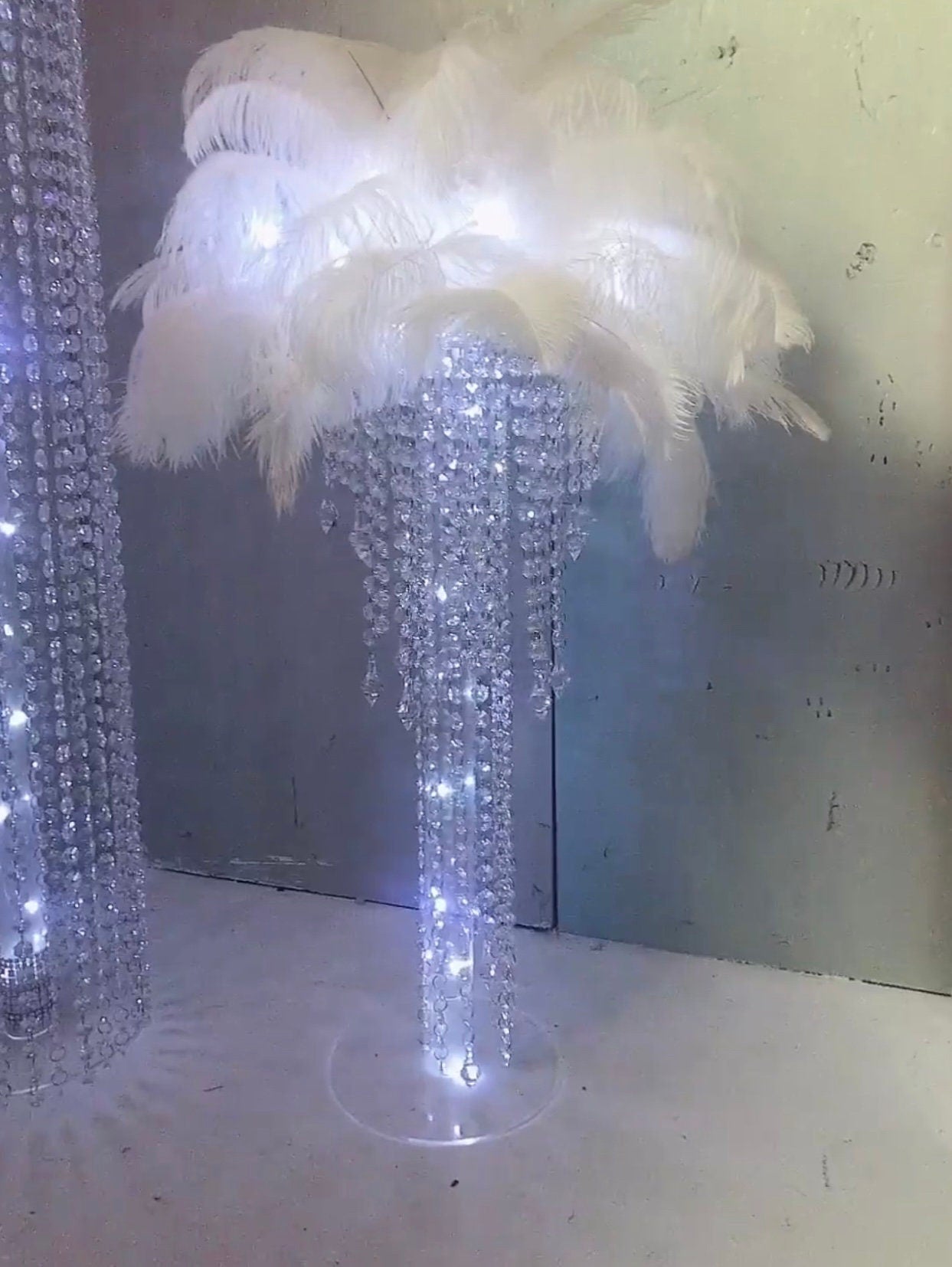 Flower or Feather chandelier Table centerpiece with string light