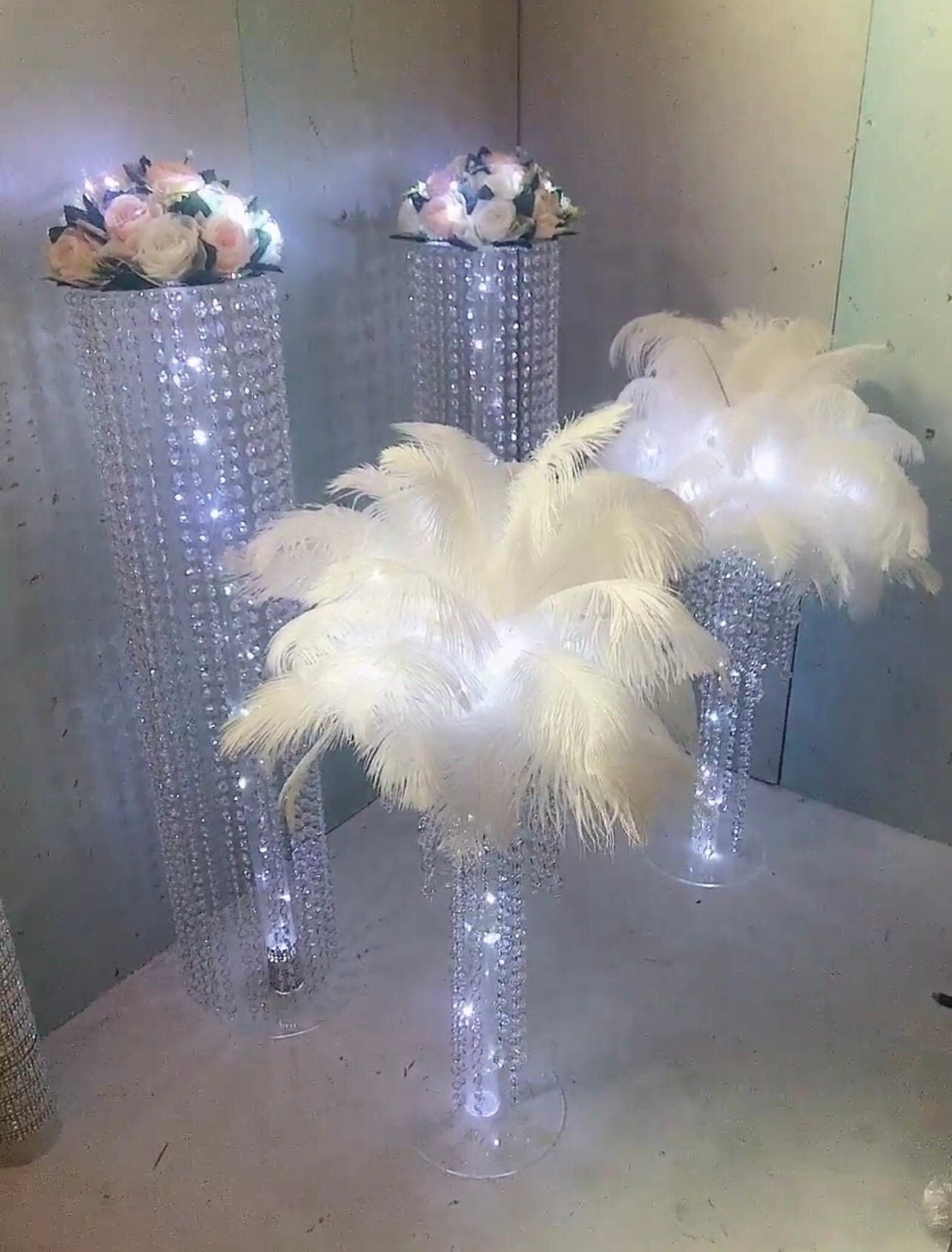 There is option for feather arrangement , flower arrangement or just plain tabletop chandelier
