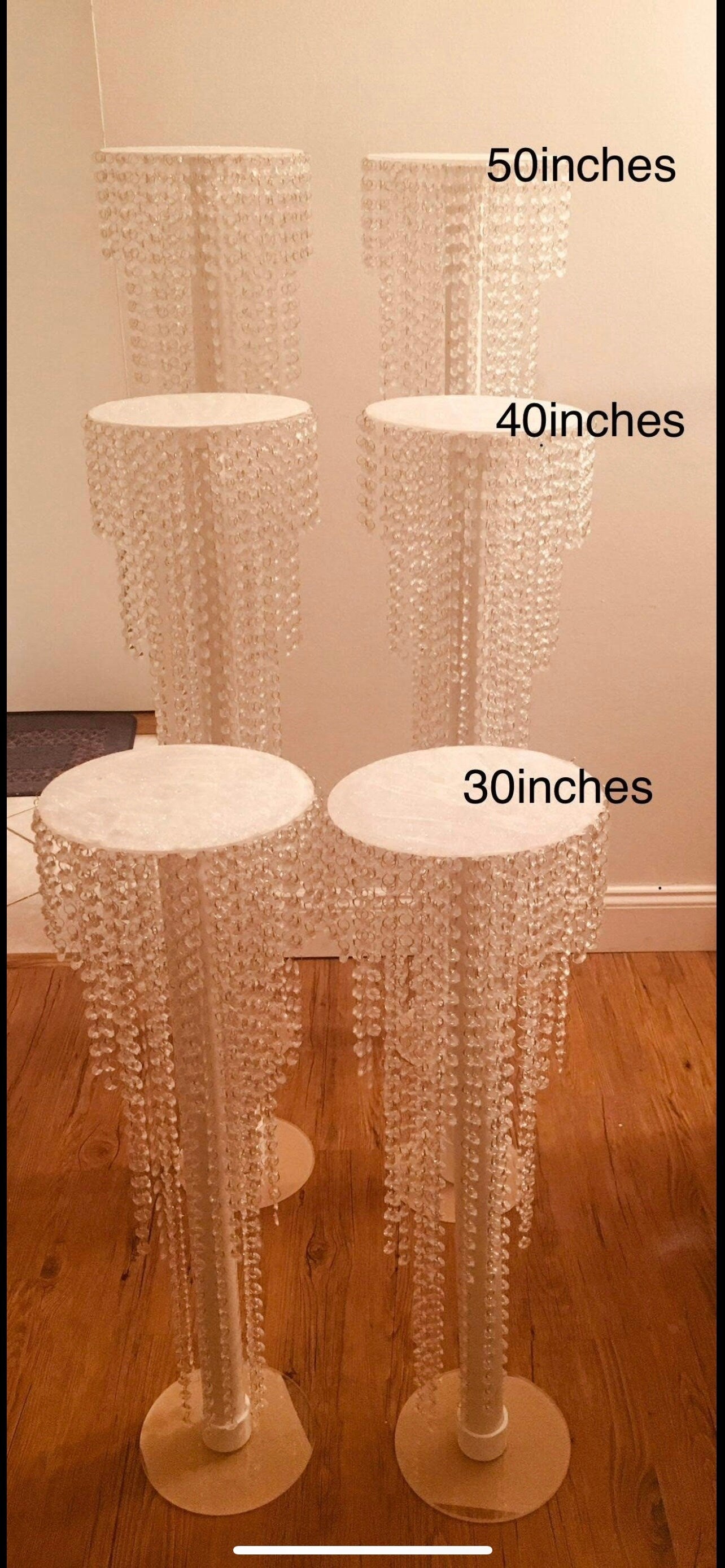 Introducing our exquisite Chandelier Aisle Markers, standing tall at 50 inches, 40 inches, and 30 inches, perfect for adding a touch of sophistication to weddings, baby showers, and beyond.